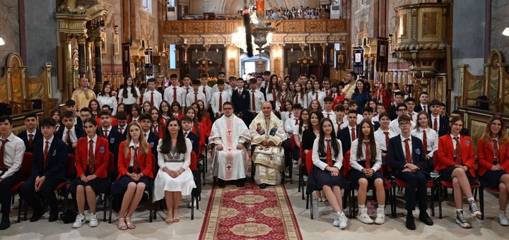 12.06.2025, Oradea (Catholica) - Pe data de 12 iunie a.c., Preasfinția Sa Virgil Bercea a oficiat Sfânta Liturghie în Catedrala „Sfântul Nicolae” din Oradea, împreună cu un sobor de preoți printre care și Mons. Luca Caveada, consilierul Nunțiaturii Apostolice în România și Republica Moldova, cu ocazia încheierii anului școlar pentru elevii claselor a VIII-a (A, B, C). În omilia sa, ierarhul a insistat asupra a trei puncte esențiale pe care elevii, aflați la un prag important al vieții lor, trebuie să le aibă în vedere, și anume: recunoștință, curaj și iubire.