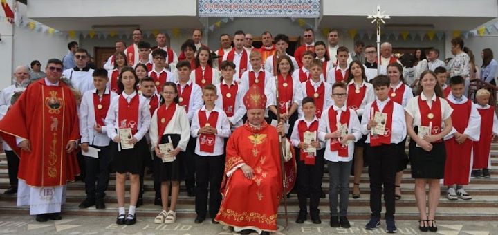 16.06.2025, Iași (Catholica) - Sâmbătă, 14 iunie 2025, în ajunul solemnității Preasfintei Treimi, în comunitatea „Sfântul Iosif Muncitorul” din Traian, jud. Bacău, Preasfințitul Petru Sescu, Episcop auxiliar al Diecezei de Iași, într-o atmosferă de rugăciune, emoție și bucurie a administrat Sacramentul Mirului celor 29 de candidați. Astăzi, cei 29 de candidați au fost însemnați cu sigiliul Duhului Sfânt fiind îmbrăcați în lumina harului. Ne rugăm pentru acești adolescenți și tineri ca bunul Dumnezeu să le conducă alegerile vieții și să-i întărească în misiunea de a mărturisi credința creștină.