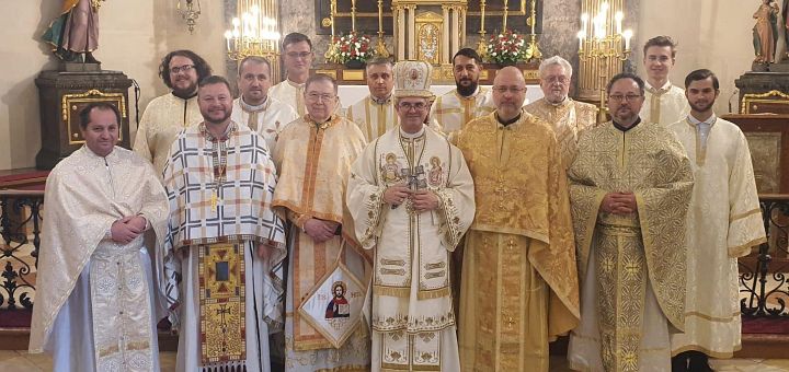 17.06.2025, Viena (Catholica) - Duminică, 15 iunie 2025, în Biserica „Sfântul Iacob” din cartierul Penzing, Viena (Austria), a fost celebrat hramul Misiunii române unite „Coborârea Sfântului Spirit”. Credincioșii români din capitala Austriei au trăit bucuria participării la Sfânta Liturghie arhierească, celebrată de către Preasfinția Sa Cristian Dumitru Crișan, Vizitator apostolic pentru credincioșii români greco-catolici din Europa Occidentală. Au concelebrat: pr. Yuriy Kolasa, Vicar general al Ordinariatului Bisericilor Orientale Catolice din Austria; pr. Dr. Larry Hogan, fost rector al Universității ITI, preoții comunităților românești greco-catolice din Viena și din Wiener Neustadt: pr. Ioan Iulian Hotico, vicarul misiunii; pr. Ovidiu Ioan Pintea de la parohia Kagran si pr. Felician Petru Vladu de Wiener Neustadt, și alți preoți, alături de diaconul dr. Gerhard Deimel si subdiaconul Alin Aron.