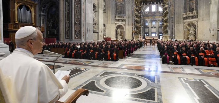 Sfântul Părinte a început prin a se concentra asupra Episcopilor ca „principiu vizibil al unității” în Bisericile lor particulare. „Este datoria lor să edifice comuniunea între membrii și cu Biserica universală”, a explicat el, „prin promovarea diversității darurilor și a slujirii date pentru propria creștere și pentru răspândirea Evangheliei”. În această slujire, a continuat el, Episcopul este susținut de „un har special divin” care îl ajută să fie „învățător al credinței” și „slujitor al sfințirii” și „îi întărește angajamentul față de Împărăția lui Dumnezeu”.