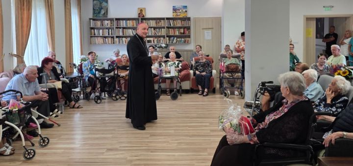 27.07.2025, Oradea (Catholica) - „Pentru noi sunteți un dar, o binecuvântare, pentru că datorită dumneavoastră acest loc devine un colț de Rai”, s-a spus în cadrul evenimentului organizat la Centrul Rezidențial „Casa Frențiu” din Oradea, al Caritas Eparhial Oradea, cu prilejul Zilei Mondiale a Bunicilor și Vârstnicilor 2025, marcată duminică, 27 iulie a.c. Cu această ocazie, în mijlocul celor 51 de bunici și vârstnici care locuiesc aici, s-a aflat Episcopul Eparhiei Greco-Catolice de Oradea, Preasfinția Sa Virgil Bercea, alături de aparținători, nepoți și copii, care au dorit să celebreze această zi împreună cu vârstnicii din familia lor.