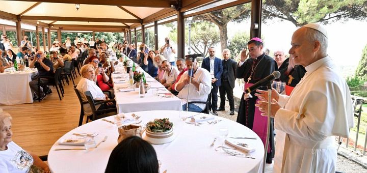 Privind la cei peste o sută de invitați – persoane sărace și vulnerabile sprijinite de Caritas diecezan din Albano, inclusiv rezidenți din cămine, persoane fără adăpost și persoane sprijinite în centrele de ascultare – Sfântul Părinte a vorbit despre semnificația profundă din spatele „frângerii pâinii împreună, un gest care pentru noi toți este profund semnificativ: actul prin care îl recunoaștem pe Isus Cristos prezent printre noi”. A continuat: „Este Sfânta Liturghie – dar este, de asemenea, totalitatea reprezentată de noi adunați în jurul mesei, împărtășind darurile pe care Domnul ni le-a dat”. Înainte de momentul mesei, Pontiful a cerut binecuvântarea lui Dumnezeu „asupra darurilor pe care urmează să le primim”, asupra tuturor „celor care au lucrat pentru a pregăti această masă pentru noi” și pentru cei care au făcut posibilă această sărbătoare. A încheiat rugându-se: „Ajută-ne, Doamne, să trăim mereu uniți în iubirea Ta”.