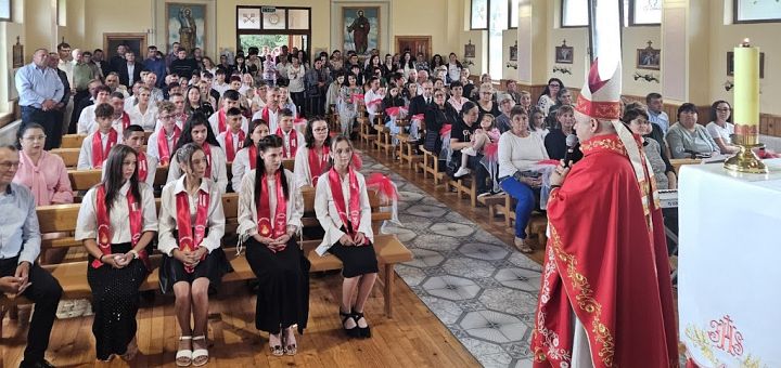 25.08.2025, Iași (Catholica) - Duminică, 24 august 2025, parohia „Sfinții Apostoli Petru și Paul” din Brusturoasa a trăit un moment deosebit de har și bucurie spirituală, deoarece 16 adolescenți și tineri din parohie și filiala Buruienișu de Sus și 15 candidați din filiala Cuchiniș l-au primit pe Duhul Sfânt cu cele șapte daruri, prin impunerea mâinilor și ungerea cu Sfântul Mir acordată de Preasfințitul Petru Sescu, Episcopul auxiliar al Diecezei de Iași.