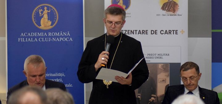 „Cu sufletul plin de recunoștință evocăm astăzi personalitatea luminoasă a Fericitului Cardinal Iuliu Hossu, fiu de seamă al Bisericii noastre greco-catolice și al poporului român. Lansarea volumului «Iuliu Hossu, preot militar și Episcop al Marii Uniri», realizată sub egida Academiei Române – filiala Cluj-Napoca, reprezintă nu doar o contribuție documentară prețioasă, ci și o fereastră deschisă către sufletul unui om care a trăit pentru credință, pentru neam și pentru adevăr. Așa cum l-a caracterizat Sfântul Părinte, Papa Leon al XIV-lea, pe 2 iunie 2025, în Capela Sixtină, Fericitul Cardinal Iuliu Hosu este, citez, «Un Apostol al speranței, păstor de suflete și martir al credinței în timpul cruntei persecuții comuniste din România». Consider providențial faptul că evenimentul de astăzi, de la Cluj-Napoca, are loc în ziua în care Sfântul Părinte invită Biserica întreagă la post și rugăciune, cerând darul păcii pentru lumea întreagă.”