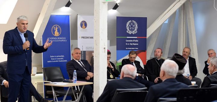 27.08.2025, Cluj (Catholica) - La sediul Academiei Române, filiala Cluj-Napoca – cu participarea Episcopilor greco-catolici Preasfinția Sa Claudiu Lucian Pop, Episcop de Cluj-Gherla, și Preasfinția Sa Cristian Crișan, Episcop auxiliar al Arhieparhiei de Alba Iulia și Făgăraș, a prof. univ. Ioan-Aurel Pop, președintele Academiei Române și a acad. Doru Pamfil, președinte al Filialei Cluj-Napoca a Academiei Române, a Excelenței Sale Massimo Novali, Consulul onorific al Italiei la Cluj-Napoca -, a avut loc, în după-amiaza de 22 august 2025, prezentarea cărții „Iuliu Hossu – preot militar și Episcop al Marii Uniri. Contribuții documentare”, lucrare a editorilor Ion Cîrja și pr. Gabriel Hoza, apariție recentă a Editurii clujene „Viața Creștină”.