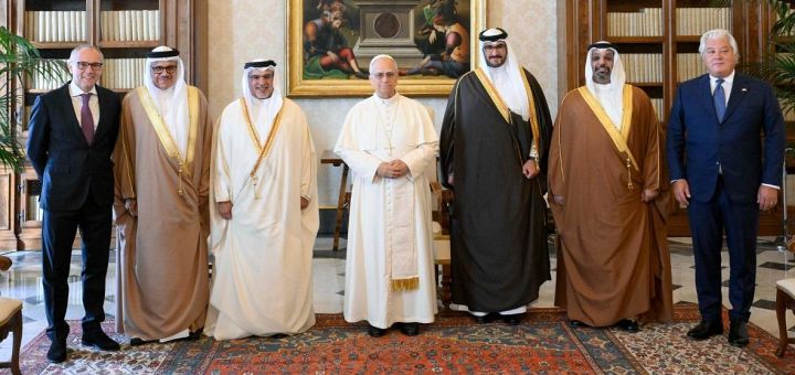 „În cadrul discuțiilor cordiale care au avut loc la Secretariatul de Stat”, se arată în comunicat, „s-a exprimat aprecierea pentru bunele relații bilaterale” dintre Sfântul Scaun și Regatul Bahrain, cu „acordul privind dorința de a le consolida în continuare”. „S-a acordat atenție”, se menționează în comunicat, „politicii Regatului Bahrain de promovare a dialogului interreligios și a coexistenței pașnice a diferitelor religii în cadrul Regatului”. Declarația concluziona că „au fost abordate mai multe teme de interes comun, precum necesitatea urgentă de a pune capăt războiului din Orientul Mijlociu și angajamentul pentru pace între națiuni”. Papa Francisc a efectuat o călătorie apostolică în Bahrain în noiembrie 2022, pentru o vizită de patru zile axată pe dialogul interreligios.