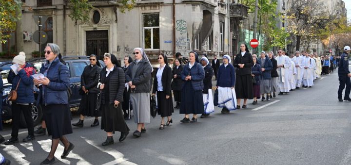 21.10.2025, București (Catholica) - A devenit o tradiție frumoasă și așteptată cu bucurie de credincioșii catolici din capitală, și nu numai de ei, organizarea procesiunii din luna octombrie dedicate Sfântului Papă Ioan Paul al II-lea, acest vestitor curajos și înfocat al Evangheliei în zilele noastre, care a iubit poporul român, pe care l-a binecuvântat cu vizita sa de neuitat în data de 7-9 mai 1999. Întrucât anul acesta s-au împlinit 20 de ani de la trecerea la cele veșnice a Sfântului Ioan Paul al II-lea, se poate spune, așadar, că procesiunea din acest an îmbracă un adevărat un caracter jubiliar-comemorativ, completând seria de manifestări spirituale și pelerinaje jubiliare organizate de Arhidieceza de București cu ocazia Anului Sfânt Jubiliar 2025. Ca în fiecare an, procesiunea a început cu adunarea preoților, a persoanelor consacrate și a credincioșilor la monumentul dedicat Sfântului Ioan Paul al II-lea din apropierea Nunțiaturii Apostolice din România, în vecinătatea Parcului Cișmigiu.