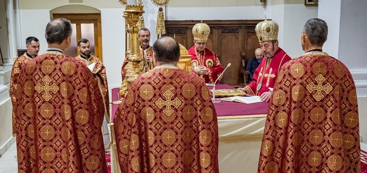 24.11.2025, Blaj (Catholica) - Duminică, 23 noiembrie 2025, Duminica a 26-a după Rusalii (Pilda bogatului căruia i-a rodit țarina), Preafericitul Părinte Claudiu Lucian Pop a poposit pentru întâia oară în Catedrala Arhiepiscopală Majoră „Sfânta Treime” din Blaj de la întronizarea sa ca Arhiepiscop Major al Bisericii Române Unite cu Roma, Greco-Catolică. Preafericirea Sa a celebrat Sfânta și Dumnezeiasca Liturghie împreună cu Preasfinția Sa Cristian Dumitru Crișan, Episcop auxiliar de Alba Iulia și Făgăraș, înconjurați de un sobor de preoți. Răspunsurile liturgice au fost oferite de Corul Catedralei „Sfânta Treime” din Blaj.