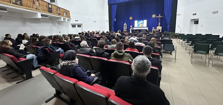 06.12.2025, Roman (Catholica) - Aproximativ 100 de tineri voluntari, liceeni, dar și persoane consacrate din Roman și din zonă, și-au pus telefoanele pe DND („Nu deranjați”) și au făcut o realitate palpabilă din acel semn impersonal albastru numit „seen” (văzut), care apare când cineva vizualizează un mesaj pe rețelele de socializare – prin participarea la o masă rotundă care a avut ca temă iluziile digitalului și apropierea adevărată pe care o pot oferi diversele forme de voluntariat. Manifestarea a fost organizată de Iosefinii lui Murialdo Roman, în colaborare cu cele patru parohii catolice din oraș, și s-a desfășurat joi, 4 decembrie 2025, începând cu ora 19.30, în Aula „Fericitul Anton Durcovici” de la parohia „Sfânta Tereza a Pruncului Isus” din Roman.