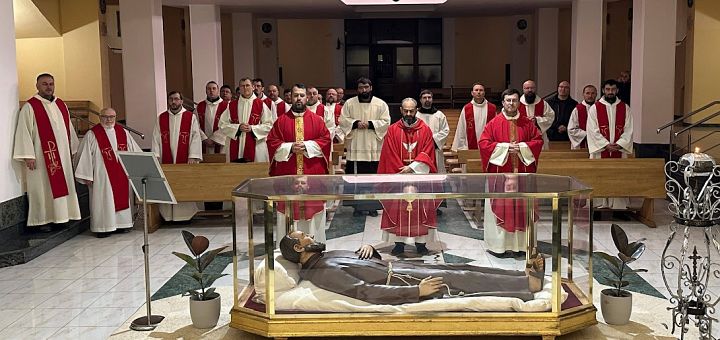 Apoi, ne-am adunat împreună în jurul Fericitului Ieremia, în cripta Sanctuarului, pentru a celebra împreună Sfânta Liturghie. La predică, fr. Paolo a dat dovadă de același zel profetic, aprinzând în noi dorința de a fi oameni evanghelici. După aceea, am participat cu toții la masă, bucurându-ne la final și de un colind frumos. Fie cu Bunul Dumnezeu, prin mijlocirea Fericitului Ieremia, să ne dea harul de a înțelege rolul deosebit pe care ni l-a încredințat, iar noi să răspundem cu dăruire deplină la această chemare și misiune. Pace și bine! (Fr. Lucian DĂMOC OFMCap pentru OFMCapucini.ro)