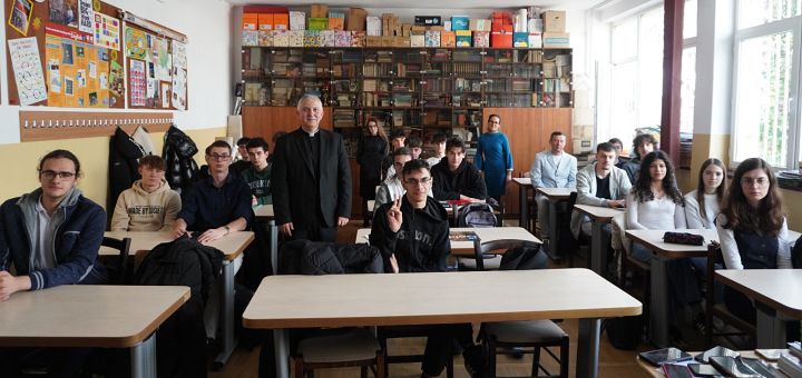 16.12.2025, București (Catholica) - Într-un context în care mulți tineri se confruntă cu nesiguranță sau manifestă reticență atunci când vine vorba de alegerea unui parcurs universitar, Facultatea de Teologie Romano-Catolică (Universitatea din București) a inițiat în perioada 4-12 decembrie 2025 un turneu de prezentare în licee teoretice, tehnologice și teologice din județele Bacău, Iași, Neamț și din București, cu scopul de a deschide un dialog onest despre educație, viitor profesional și responsabilitate socială. Din partea Facultății, au fost prezenți pr. decan Eduard Giurgi, prof. Ștefan Beca și studenții Berenice Negrea, Andreea Ciupe și Alecsandra Ecard (specializarea Teologie și Asistență Socială), Alex Duicu și Rareș Dumitraș (specializarea Studii Religioase), Roberto Enășel (Masterat Asistența Socială a Bisericii).