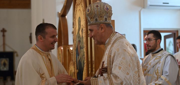 12.01.2026, Oradea (Catholica) - Duminică, 11 ianuarie a.c., Preasfinția Sa Virgil Bercea a celebrat Sfânta Liturghie la Sanctuarul Eparhial „Maica Domnului” din Oradea, în duminica după Botezul Domnului. În această zi plină de emoție, pr. Iulian Robu OFMConv, paroh și rector al Sanctuarului Eparhial din ianuarie 2017 până în prezent, a celebrat ultima Sfântă Liturghie alături de credincioșii orădeni înainte de începerea noii misiuni care i-a fost încredințată. Au participat pr. Mihai Vătămănelu OFMConv, Vicar general, confrații călugări franciscani, un sobor de preoți și diaconi, precum și numeroși credincioși care au dorit să își exprime recunoștința pentru acești nouă ani de slujire ai fratelui Iulian Robu la Oradea.