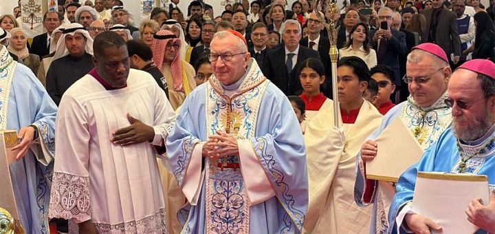 16.01.2026, Roma (Catholica) - De la construirea ei, a primei biserici catolice din Kuweit și din Golful Arabiei, „nenumărați creștini au găsit protecție în Maria”. Iar ieri, ca și astăzi, gândurile noastre se îndreaptă către „mulți oameni din întreaga lume care sunt obligați să caute un loc sigur” din cauza „războiului, sărăciei, dezastrelor naturale sau a altor dificultăți”. Cardinalul Pietro Parolin a vorbit despre importanța bisericii Fecioarei Maria din Arabia în timp ce a prezidat celebrarea ridicării la rangul de Bazilică minoră a lăcașului de cult din Ahmadi, în această dimineață, vineri, 16 ianuarie. În timpul ceremoniei, punctul culminant al vizitei sale în țară, Cardinalul a amintit originile lăcașului construit pe nisipurile deșertului în 1984, când un mic grup de străini veniți să lucreze în industria petrolieră a construit o capelă modestă dedicată Fecioarei Maria.