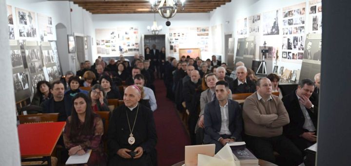 09.02.2026, Oradea (Catholica) - Un eveniment cultural și spiritual de excepție a avut loc duminică, 8 februarie 2026, la Casa Memorială „Iuliu Maniu” din Bădăcin, unde comunitatea locală și numeroși invitați din Cluj-Napoca, Oradea, Satu-Mare, Zalău, București, Șimleu și împrejurimi au participat precum la vernisajul expoziției foto-documentare Fericiții Episcopi martiri greco-catolici români și lansarea volumului Dialoguri esențiale din exil (Editura Polirom, 2025), scris de conf. dr. Anca Stângaciu. Manifestările, prilejuite de împlinirea a 73 de ani de la trecerea la Domnul a lui Iuliu Maniu în închisoarea din Sighet (în februarie 1953), s-au desfășurat sub semnul rugăciunii, al memoriei istorice și al mărturiei trăite prin martiriul credinței și al exilului politic.