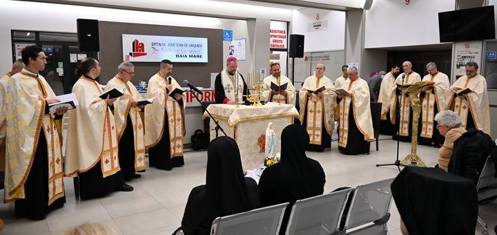 12.02.2026, Baia Mare (Catholica) - Miercuri, 11 februarie 2026, Ziua Mondială a Bolnavului, ediția a XXXIV-a a fost sărbătorită la Spitalul Județean de Urgență „Dr. Constantin Opriș” din Baia Mare, prin celebrarea Tainei Sfântului Maslu de către Preasfinția Sa Vasile Bizău, împreună cu pr. Ioan Balea, vicar judecătoresc, pr. Emil Gîrboan, protopop al protopopiatului Baia Mare, pr. Mihai Șimonca, capelan al misiunii greco-catolică Spitale și alți preoți din Eparhie. Cu toții s-au rugat împreună pentru bolnavii din spital, dar și pentru cadrele medicale și credincioșii prezenți.
