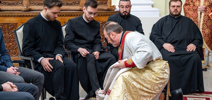 În Sfânta și Marea Joi, Biserica face pomenirea spălării picioarelor, a Cinei celei de Taină, a rugăciunii din Grădina Ghetsimani și a trădării Domnului. În acest spirit, ziua a început în Catedrala arhiepiscopală majoră „Sfânta Treime” cu Vecernia unită cu Sfânta Liturghie a Sfântului Vasile cel Mare, celebrată de Preafericirea Sa Claudiu-Lucian Pop, Arhiepiscopul Major al Bisericii Române Unite cu Roma, Greco-Catolică. Slujba, cu profunda sa încărcătură spirituală specifică acestei zile, a fost urmată de ritualul spălării picioarelor, care actualizează gestul de smerenie al Mântuitorului față de ucenicii Săi, precum și de sfințirea pâinii și a vinului ce vor fi împărțite credincioșilor în noaptea Învierii.