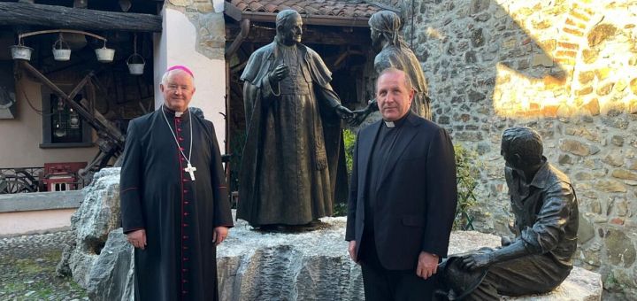 28.04.2026, București (Catholica) - În Duminica Bunului Păstor, 26 aprilie 2026, ÎPS Aurel Percă, Arhiepiscop Mitropolit de București, însoțit de pr. Gabriel Popa, secretar arhidiecezan, a vizitat locurile unde s-a născut, a crescut și unde revenea mereu cu plăcere în vacanțele sale Sfântul Papă Ioan al XXIII-lea – Angelo Roncalli. Excelența Sa a celebrat Sf. Liturghie în Sanctuarul Sotto il Monte, închinat celui care era numit Papa cel Bun, în prezența unui mare număr de copii, tineri și adulți veniți în pelerinaj la acest loc plin de spiritualitate.