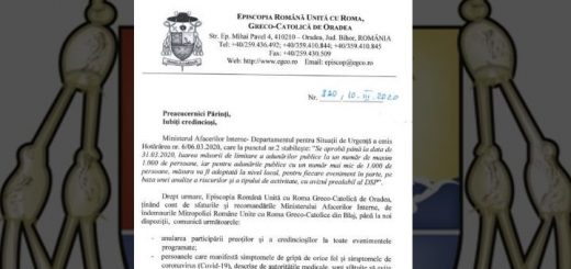Episcopul greco-catolic de Oradea a adresat astăzi o scrisoare preoților și credincioșilor din Eparhie, în care amintește pentru început o decizie a Ministerului Afacerilor Interne, prin Departamentul pentru Situații de Urgență, mai exact de...